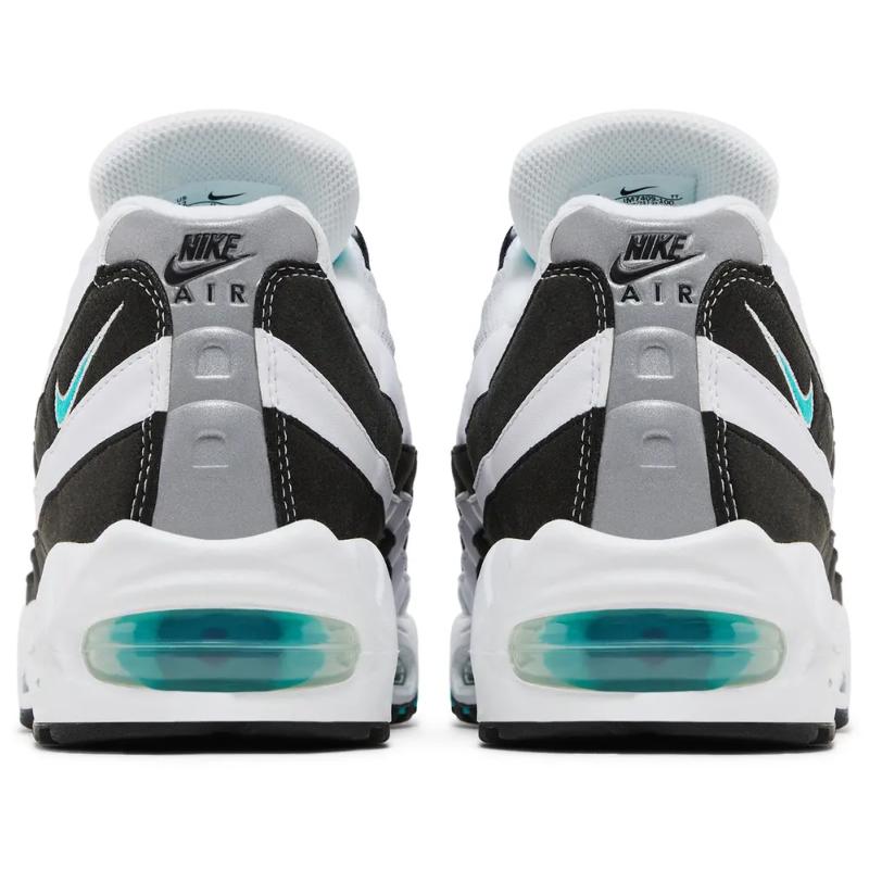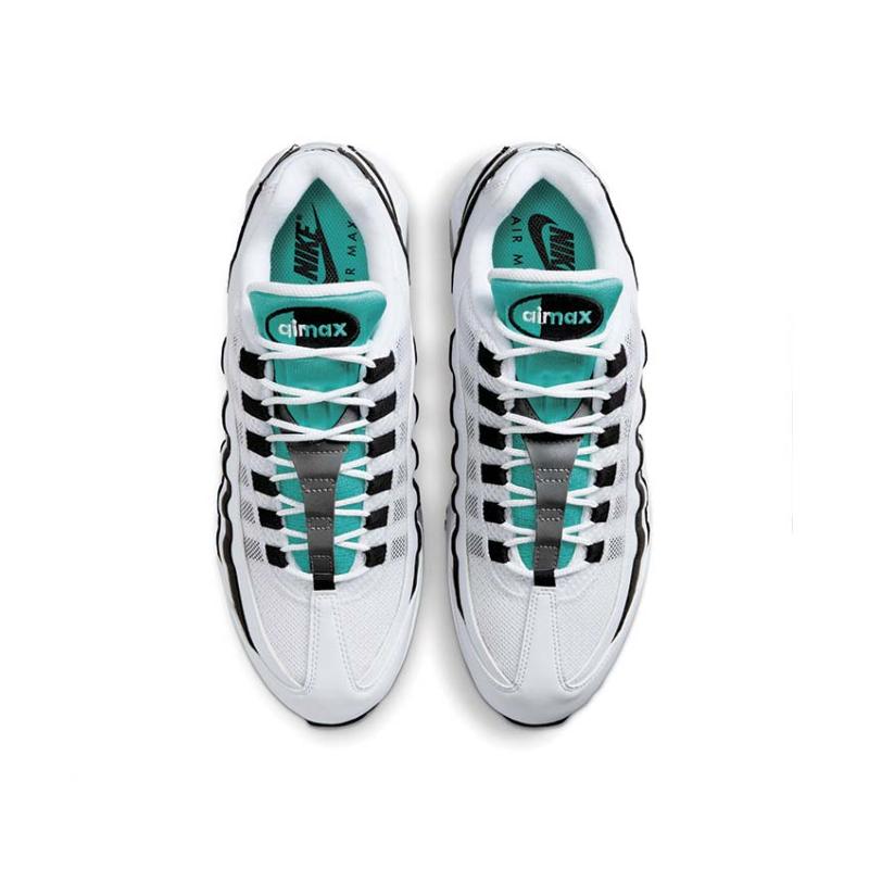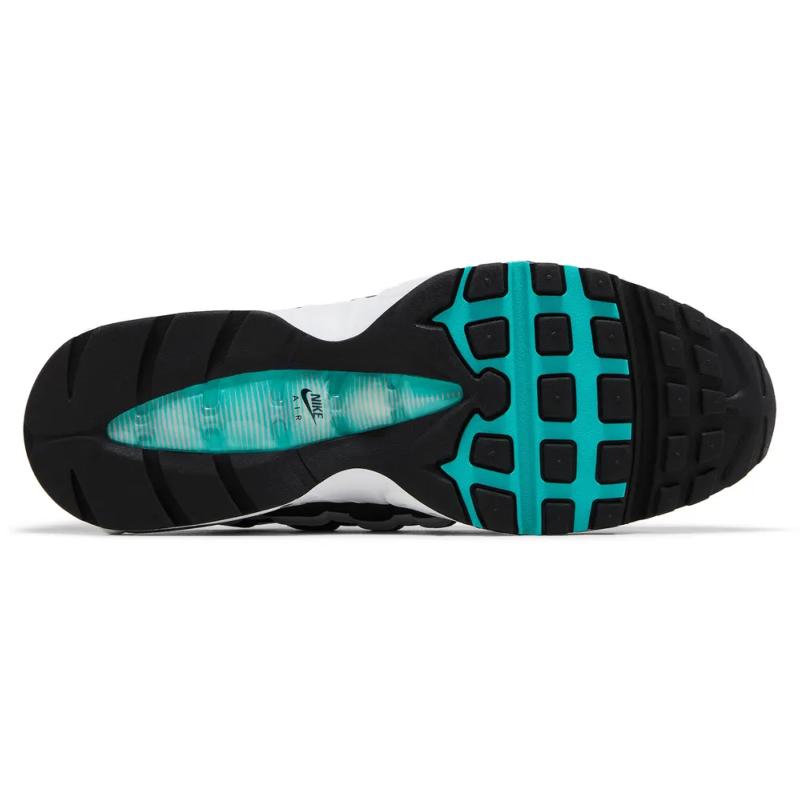 La edición 2025 de las Nike Air Max 95 OG "Black Border" celebra el 30.º aniversario de la silueta con el resurgimiento de una combinación de colores clásica lanzada originalmente en 1996. Los paneles laterales de estas zapatillas retro están confeccionados con capas superpuestas de cuero en acabados alternados en blanco y negro. La paleta bitono se ve interrumpida por detalles en Hyper Jade en el mini-Swoosh y la lengüeta, marcados con un parche Air Max bordado. El brillante tono verde azulado se repite en las unidades Air-Sole que realzan la entresuela de espuma blanca.